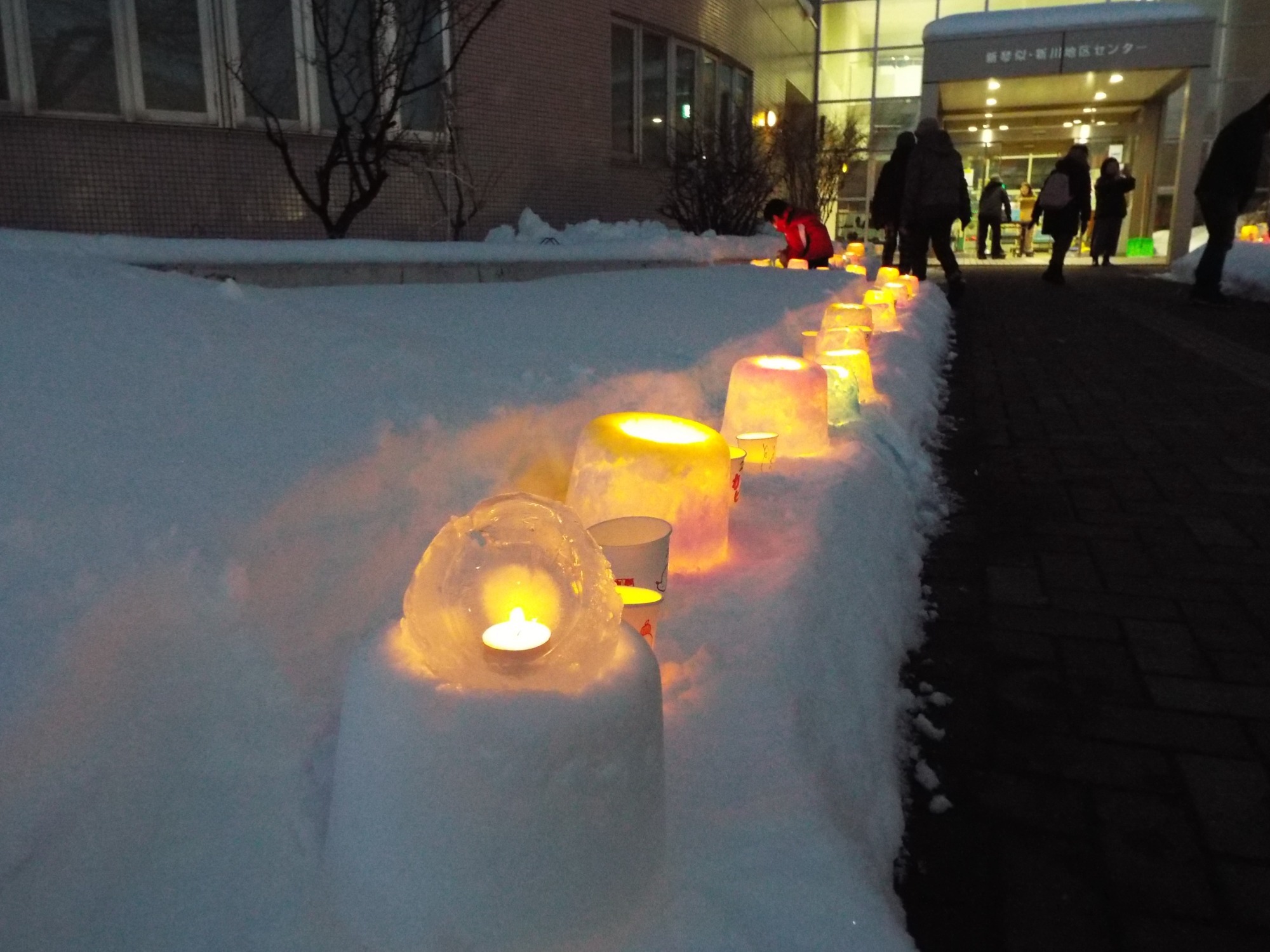 | 開催日時 スケジュール | 令和8年1月31日(土曜日) ◆15時~ 新・新スタッフと一緒にスノーキャンドルを作り、紙コップ灯ろうを雪の中に設置します ◆17時~ スノーキャンドルと紙コップ灯ろうにロウソクをいれて、あかりを灯します ◆18時 終了予定 |